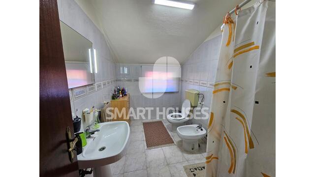 - Através da porta principal ao nível do primeiro andar, acede-se directamente a hall de entrada, e daqui para a sala, 2 quartos, W.C comum e cozinha, completamente mobilada e equipadas com os principais electrodomésticos (fogão, exaustor, microondas, frigorífico, máquina lavar roupa); tem despensa.