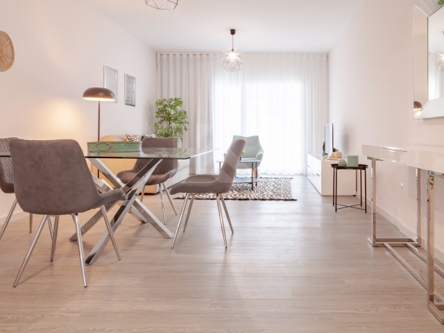 O apartamento é composto por um quarto de dormir, uma cozinha equipada, uma sala de estar e jantar com acesso a varanda e uma lavandaria.