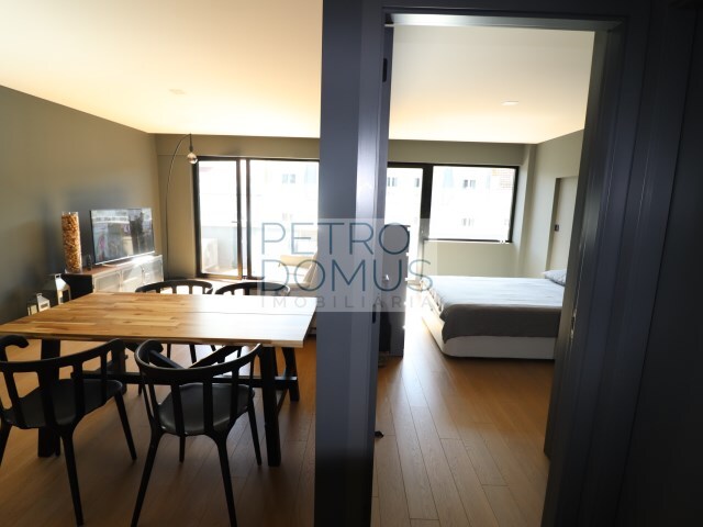 Apartamento mobilado, com varanda, cozinha totalmente equipada, sistema de ar condicionado e um lugar de estacionamento.