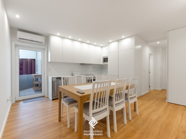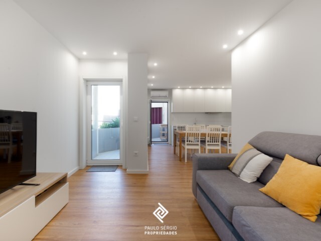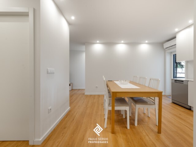 O apartamento dispõe de 2 quartos (1 suite), 2 WC´s, 2 salas e 2 varandas e facilidades como ar condicionado, mobília completa, eletrodomésticos topo de gama (inclusive máquina de lavar louça), blackouts elétricos e perfeito isolamento térmico e acústico.