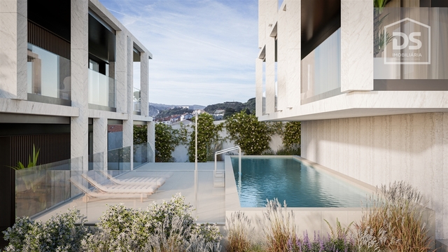 A residência oferece lugares de estacionamento subterrâneos, uma piscina comum no piso térreo e nada menos do que quatro piscinas privadas com áreas de churrasco no terraço - perfeitas para desfrutar do clima português e vistas panorâmicas.