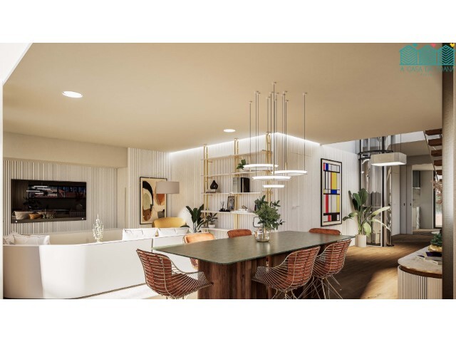 Esta fantástica Penthouse é composta, no seu piso inferior, por ampla e espaçosa sala de estar e jantar, com acesso a 2 aprazíveis varandas, luminosa e solarenga cozinha, individualizada da sala, com zona de refeições e lavandaria, e casa de banho de serviço.