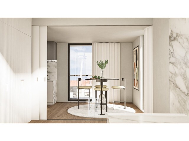 Utilização de materiais nobres, como madeira, mármore e vidro em prelo centro da cidade de Aveiro, com vista desafogada e muita luz natural.