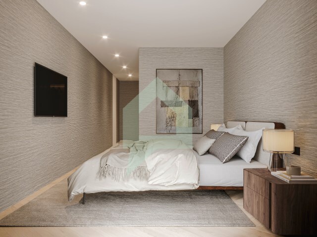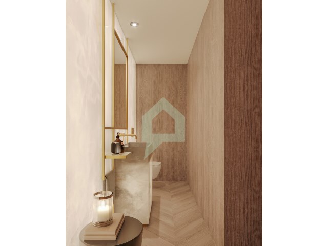 O apartamento composto por um quarto suite e WC privativo e dois quartos com WC comum e um WC de serviço, e todos quartos com roupeiros embutidos. A cozinha com eletrodomésticos incluídos em open space com varanda circular a todos os compartimentos obtendo assim luz natural em todos eles. Nos pisos inferiores encontra-se às garagens privativas com portões automáticos com elevadores de acesso aos andares habitacionais.