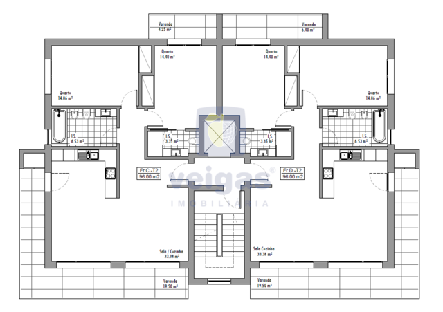 - Dois quartos, sendo um deles suite (casa de banho privativa)