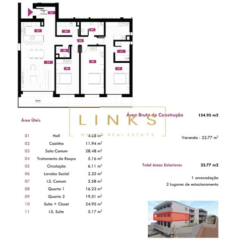 Lugares de garagem, que variam consoante a tipologia da fração, garantindo comodidade e segurança no estacionamento.
