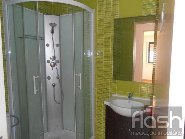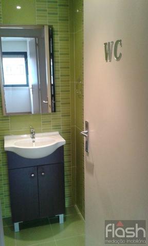 Dois quartos um deles com roupeiro, e um WC com poliban e coluna de hidromassagem.