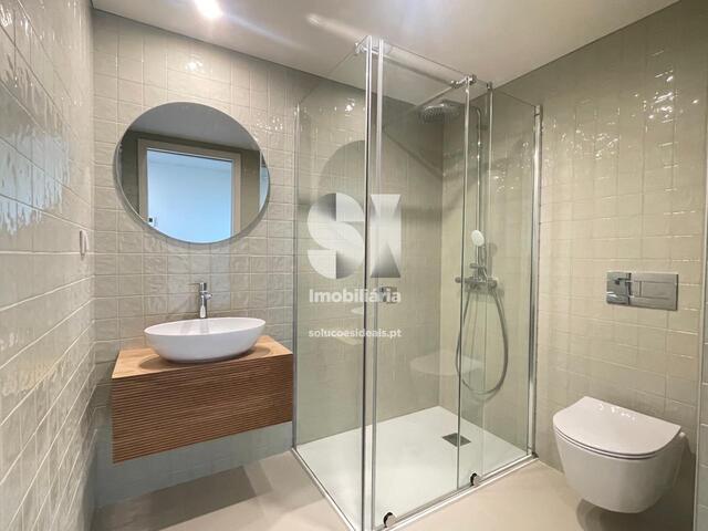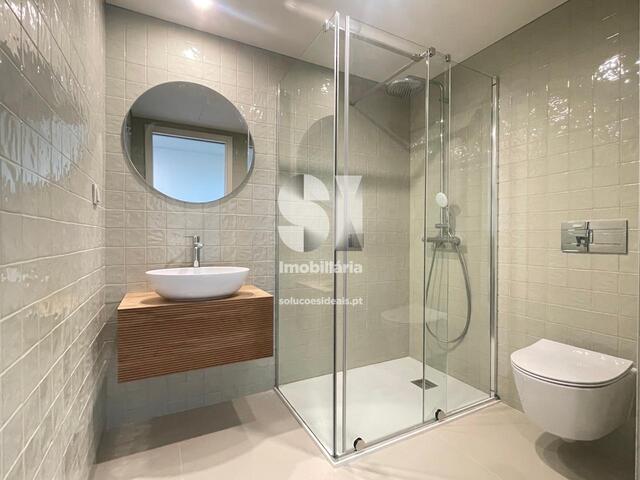 O WC possui louças sanitárias suspensas, lavatório com móvel e base de duche extra plana, de grandes dimensões, com respetivo resguardo em vidro temperado, inclui sistema de ventilação mecânica, através de VMC.