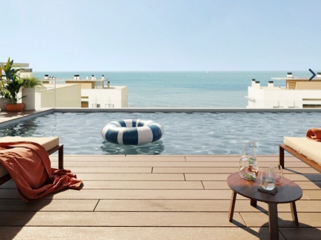 Os apartamentos destacam-se pelas suas grandes varandas todas direccionadas para o mar, pavimento flutuante, cozinhas totalmente equipadas com eletrodomésticos Bosch, elegantes sanitários Roca, ar condicionado e bomba de calor para aquecimento de águas.