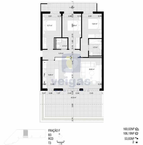 O apartamento é composto por 3 quartos, dos quais 1 em suite, com roupeiros embutidos, sala e cozinha em open space, 2 casas de banho e hall.