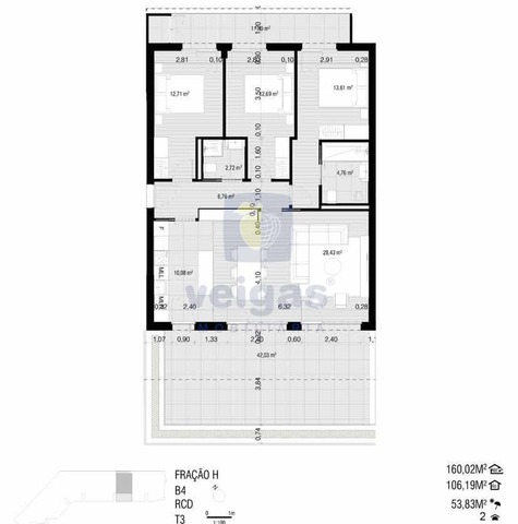 O apartamento é composto por 3 quartos, dos quais 1 em suite, com roupeiros embutidos, sala e cozinha em open space, 2 casas de banho e hall.