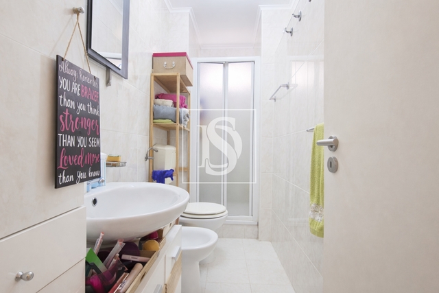 O apartamento conta com um arrumo que foi transformado num quarto, num outro arrumo exterior e despensa junto à entrada.