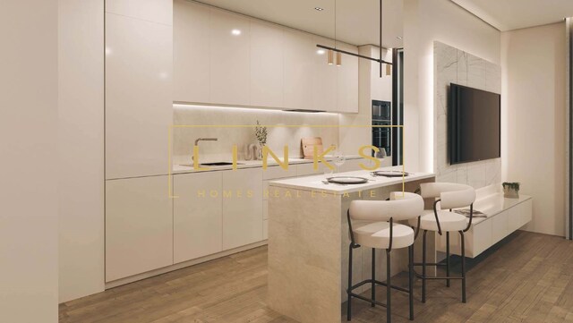 No interior, o apartamento destaca-se pela sua organização inteligente e pelas áreas bem distribuídas. A sala ampla, com excelente luminosidade natural e ligação direta à varanda, cria um ambiente acolhedor e versátil. A cozinha apresenta um design contemporâneo, aliando funcionalidade a acabamentos de elevada qualidade.