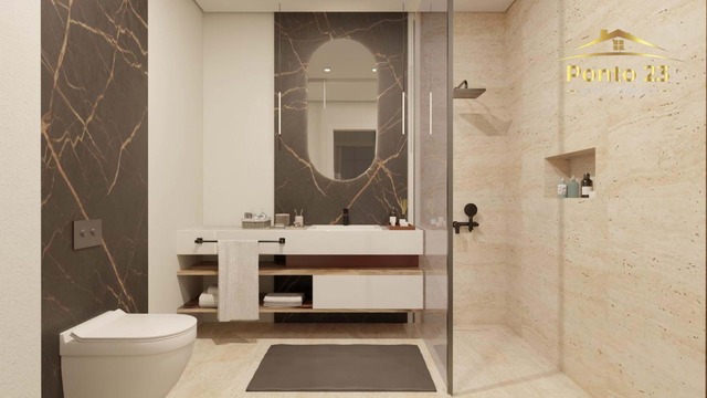 Com dois quartos espaçosos e duas casas de banho modernas, este apartamento de 104 metros quadrados é ideal para quem procura conforto e elegância. O elevador e a garagem privativa garantem comodidade e segurança aos moradores.