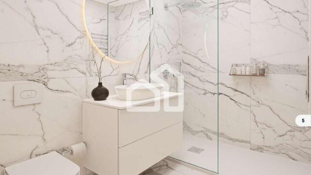 - Revestimentos das paredes e chão em material porcelânico retificado