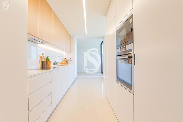 Em termos de equipamentos, o apartamento dispõe de estores elétricos, sistema de vídeo porteiro e domótica para iluminação, ar condicionado e ventilação por conduta no quarto e sala, bomba de calor para aquecimento das águas sanitárias, portão automático na garagem e cozinha equipada com placa, forno, micro-ondas, exaustor, máquina de lavar loiça, máquina de lavar roupa, máquina de secar roupa, frigorífico vertical e arca vertical (tudo da marca AEG). A garagem fica equipada com tomada para carregador de carros elétricos.