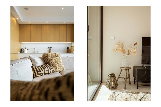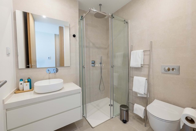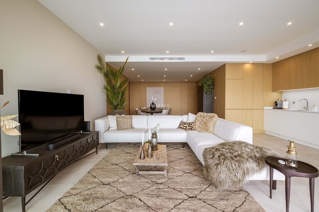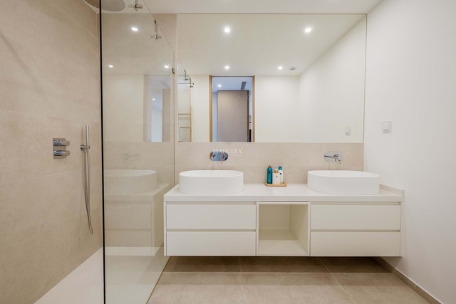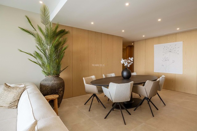 O apartamento dispõe de três quartos espaçosos e três elegantes casas de banho, projetadas para proporcionar conforto e privacidade. A área de estar, jantar e cozinha em plano aberto é repleta de luz natural e flui perfeitamente para os espaços exteriores.