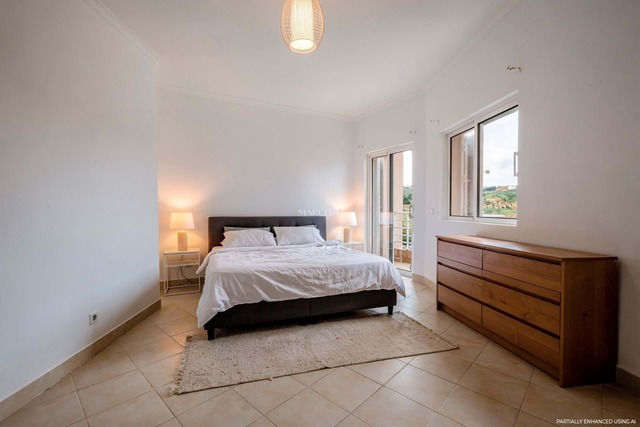 O imóvel é composto por três quartos espaçosos e duas casas de banho, sendo uma delas privativa. A área social destaca-se por uma sala ampla e luminosa, equipada com lareira e ar condicionado, ideal para momentos de convívio em qualquer estação do ano. As duas janelas grandes proporcionam abundante luz natural e acesso direto a uma agradável varanda.