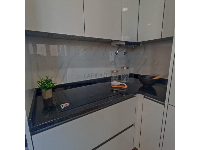 - Cozinha com móveis em Branco; Ladrilho em toda a parede por trás dos móveis; Equipada com Forno, Placa, Exaustor, Micro-ondas, Máquina de lavar louça encastrada, Máquina de lavar roupa encastrada, Esquentador e Combinado encastrado;