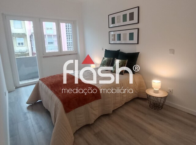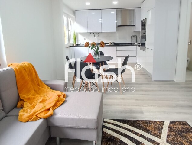 Composto por hall de entrada, sala e cozinha em open-space, cozinha totalmente equipada com eletrodomésticos encastrados, 2 casas-de-banho e 3 quartos com roupeiro, um dos quartos em suite, varanda aberta. Destaco ainda o piso flutuante na sala e quartos, as portas interiores lacadas a branco, as janelas oscilo-batentes com vidros duplos, os estores elétricos, os tetos falsos com luzes embutidas leds em todas as divisões e a pré-instalação de Ar Condicionado, porta blindada, 2 elevadores, 2 frentes.