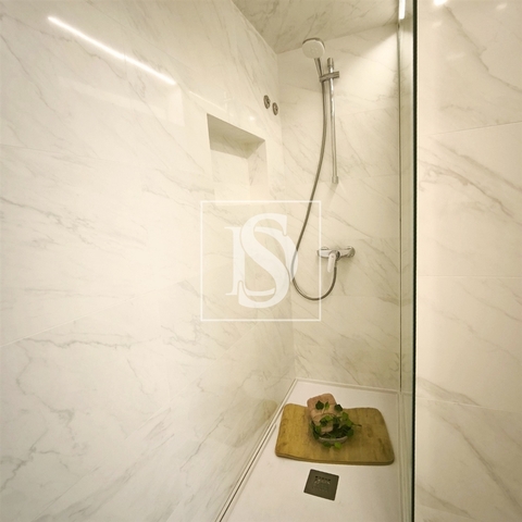 O apartamento beneficia de caixilharia em PVC lacada a branco, com vidros duplos e sistema oscilo-batente em todas as divisões, assegurando excelente isolamento térmico e acústico. Conta ainda com tetos falsos e iluminação LED embutida, pré-instalação de ar condicionado, estores elétricos e porta blindada.