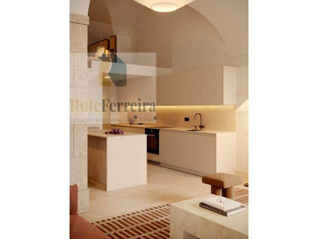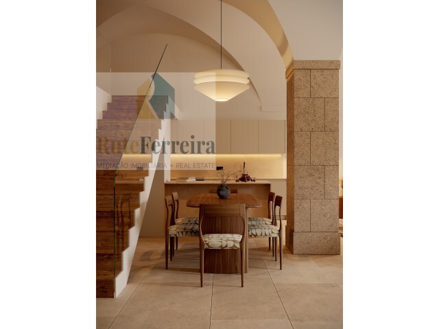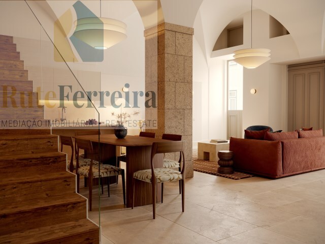 Apartamento de tipologia T1+1 Duplex, com uma área bruta de 188 m2. No piso inferior, conceito open space, composto por