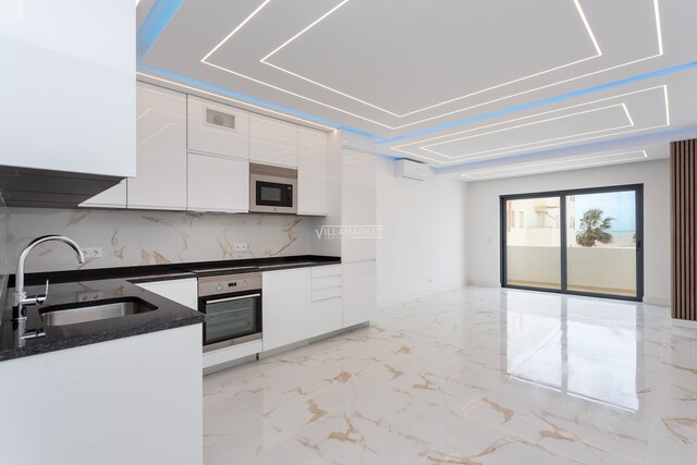 Este apartamento com vista mar foi totalmente remodelado com cozinha totalmente equipada, Ar Condicionado, estores elétricos e vidros duplos. Situada no Calçadão de Quarteira onde encontramos uma bela praia com oferta de uma grande variedade de comodidades e serviços, como restaurantes, cafés, supermercados, lojas,