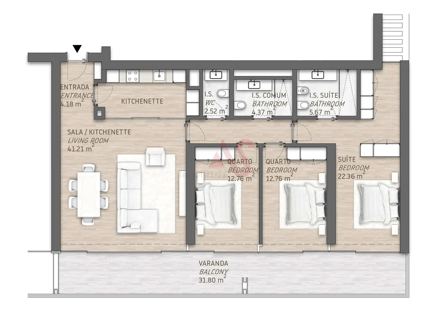 Apartamento T3, desde 1.080.000€, no empreendimento SERENITY, edifício GOLDEN.DESCRIÇÃO:Do arquiteto Miguel Saraiva do atelier SARAIVA+ASSOCIADOS, nasce este fabuloso empreendimento constituído por dois edifícios, o edifício GOLDEN, e BLUE, com um total de 53 frações, de tipologias T0 a T4.Com uma arquitetura contemporânea e sofisticada, oempreendimento SERENITYdestaca-se peloconforto e elegância incomparáveisque oferece. Graças à excelente exposição solar do edifício, ao pé direito e grandes janelas. Este empreendimento caracteriza-se por terapartamentos espaçosos e luminosos. Os layouts eficientes com muita arrumação, com acabamentos de elevada qualidade, fazem de cadaapartamento um lar de sonho.Inserido em condomínio privado, este apartamento T3, no 1º andar é composto por:- Hall de entrada;- Sala comum e KItchenette;- I.S. Social- 2 Quartos;- 1 Suite;- I.S. Completa- Varanda com 31,80m2;- 2 Lugares de estacionamento;- 1 Arrumo.Espaços Comuns INTERIORES:- Piscina Aquecida;- Ginásio;- Sala de massagem;- Sala de convívio;- Todos os espaços estão totalmente equipados.Espaços Comuns EXTERIORES:- Piscinas;- Jardim privativo.TODOS AS CARACTERISTICAS E MATERIAIS DE CONSTRUÇÃO DESCRITOS NO CADERNO DE ENCARGOS, DISPONIVEL PARA CONSULTAENVOLVÊNCIA:- VILAMOURA TENNIS & PADEL ACADEMY 800m- CLÍNICA PARTICULAR DE VILAMOURA 1 km- MARINA DE VILAMOURA 2 km- PRAIAS DA FALÉSIA/VILAMOURA 2 km- CAMPOS DE GOLFE 2,4 km- CENTRO EQUESTRE DE VILAMOURA 4,7 km- PARQUE AMBIENTAL DE VILAMOURA 5,1 km- COLÉGIO INTERNACIONAL DE VILAMOURA 5,5 km- AEROPORTO DE FARO 25 km / 30 min.- CASINO DE VILAMOURA 2,5 kmSERENITY: O seu luxuoso refúgio no coração de Quarteira.Agende a sua visita e viva o sonho algarvio!Prazos previstos para a obra doEmpreendimentoSERENITY(datas estimadas)- Conclusão da caixilharia:2º semestre de 2025- Escrituras:2º semestre de 2026Referência: ASG25229Por sermos intermediários de crédito devidamente autorizados pelo Banco de Portugal (Reg. 2736) fazemos a gestão de todo o seu processo de financiamento, sempre com as melhores soluções de mercado.Porquê escolher a AS ImobiliáriaCom mais de 16 anos no ramo imobiliário e milhares de famílias felizes, dispomos de 8 agências estrategicamente localizadas, para o servir com proximidade, corresponder às suas expectativas e ajudá-lo a adquirir a sua casa de sonho. Compromisso, Competência e Confiança são os nossos valores que entregamos aos nossos Clientes na hora de comprar, arrendar ou vender o seu imóvel.A nossa prioridade é a sua Felicidade!Especialistas imobiliários em Vizela; Guimarães; Taipas; Felgueiras; Lousada; Santo Tirso; Barcelos; S. João da Madeira; Porto; Lisboa; Braga