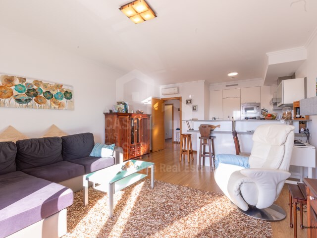 Apartamento T2, mobilado, com box fechada, vista de mar, fácil acesso ao centro da vila, em prédio com elevador, piscina e banho turco.