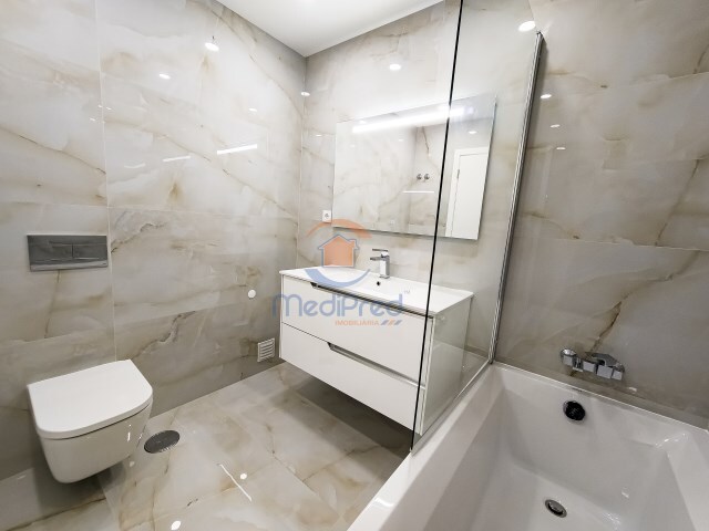 -? Cozinha (totalmente equipada com eletrodomésticos de marca SIEMENS incluindo placa vitrocerâmica, forno, exaustor, esquentador ventilado, frigorifico, arca congeladora, máquina de lavar loiça, máquina de lavar roupa, micro-ondas, bancada e móveis lacados em branco).