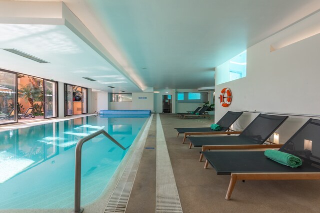 Para aqueles que procuram se manter ativos, o complexo oferece uma variedade de comodidades, incluindo piscina compartilhada, quadra de tênis, academia e piscina infantil. Após um longo dia de atividades, relaxe e descontraia na piscina aquecida, jacuzzi ou piscina coberta. Com piso radiante, ar condicionado e estores elétricos, este apartamento garante o máximo conforto durante todo o ano.