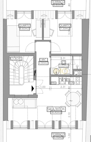 Ãreas (m²)Ãrea Bruta 65Ãrea de Terreno 77Ãrea Ãtil 61DivisõesCasa(s) de Banho 1Número de pisos 4Sala(s) 1Total quarto(s) 2EnvolventeCentro da CidadeEscolaFarmáciaPolÃciaTransportes PúblicosExtrasPiso 3