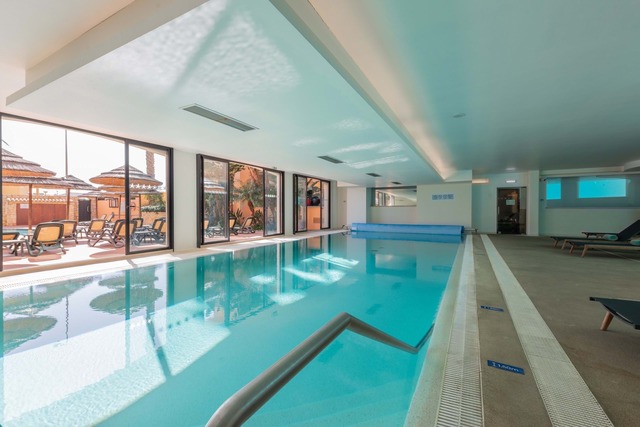 O Resort tem ainda receção, ginásio, sauna , jacuzzi, piscinas exteriores e interior, spa e restaurante.