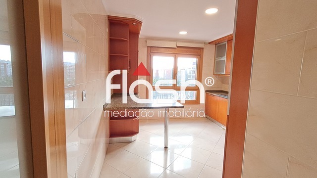 O apartamento com 106m² de área útil composto por hall de entrada, sala com varanda, cozinha totalmente equipada com eletrodomésticos encastrados, 2 casas-de-banho, corredor com porta de acesso aos quartos, 3 quartos com roupeiros embutidos, um dos quartos em suíte e um outro com varanda. Varandas fechadas com vidro panorâmico retrátil.