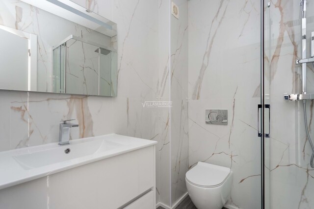 Os acabamentos são modernos, incluindo loiças suspensas, base de duche e elegante pavimento flutuante nos quartos.