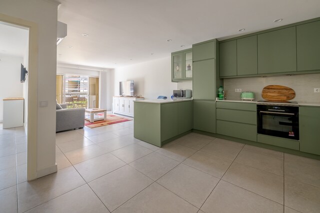 O apartamento com ar condicionado é composto por um quarto espaçoso com roupeiro embutido , cozinha em open plan toda equipada, casa de banho com walk in shower , sala de estar com acesso a varanda dupla . Com um lugar de estacionamento coberto, e um descoberto, uma arrecadação.