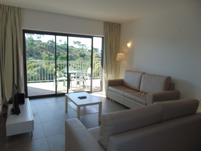 A varanda privada é um convite ao descanso: um espaço simples, honesto e perfeito para aproveitar o clima algarvio.