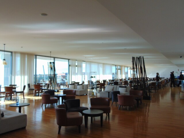 A zona social em open space integra sala de estar e jantar com uma cozinha totalmente equipada, criando um ambiente amplo, luminoso e funcional. Os acabamentos são de nível elevado nota-se logo à entrada.