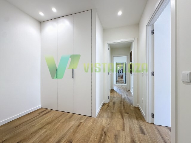 O apartamento oferece também conforto absoluto, com ar condicionado, estores térmicos elétricos, porta de segurança, roupeiros embutidos, e um sistema de bomba de calor para aquecimento de águas. Conta ainda com elevado isolamento térmico e acústico, garantindo eficiência energética (Certificação A).