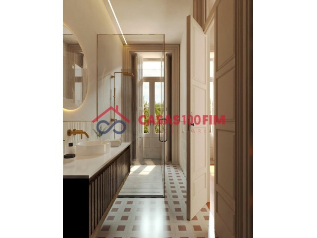 O apartamento conta com cozinha equipada e ar condicionado, refletindo uma reabilitação cuidada que respeita a história, mas responde às exigências da vida atual. A conclusão da obra está prevista para abril de 2027.