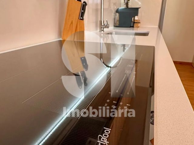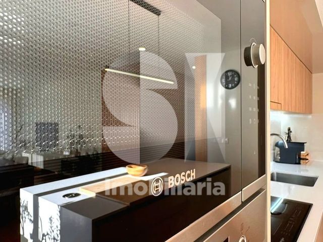 A cozinha de design exclusivo, totalmente equipada com eletrodomésticos Bosch, apresenta bancadas em Silestone e soluções de arrumação de elevada precisão estética e funcional.