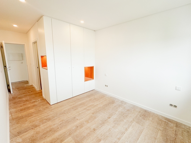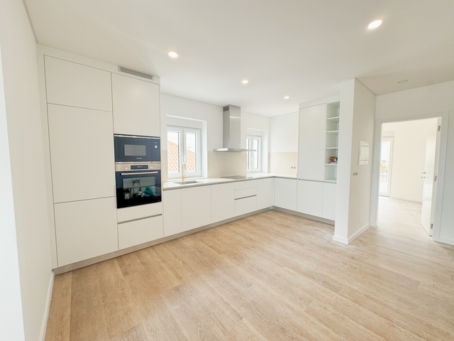 Com três quartos, sendo dois deles em suíte, zona social em open space e cozinha totalmente equipada com eletrodomésticos Bosch, oferece uma vivência prática e contemporânea.