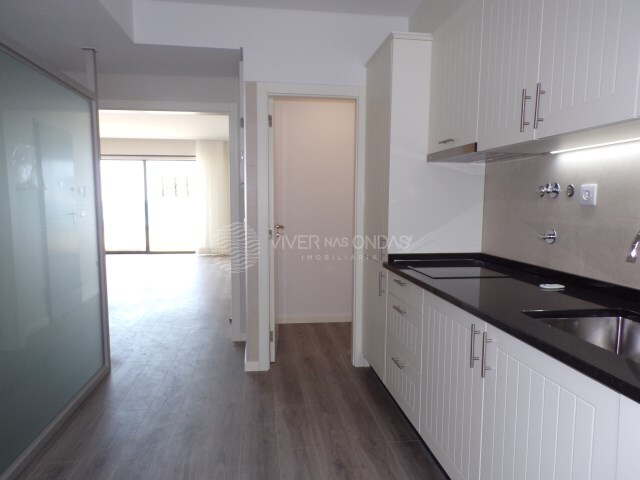 - Sala e cozinha em open space, com acesso ao terraço e vista mar