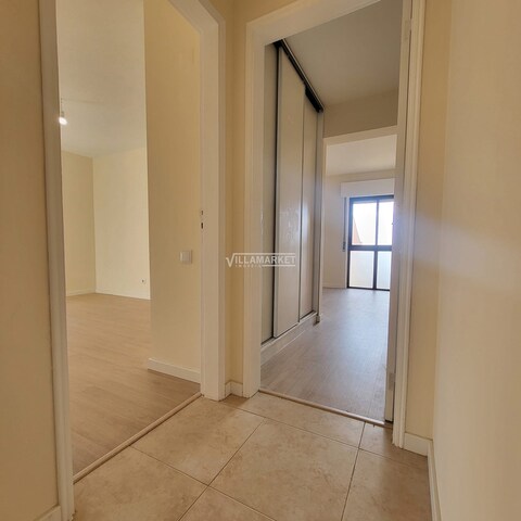 Sala c/ pavimento cerâmico; grande despensa; Cozinha c/ móveis novos, equipado c/ placa, forno e exaustor; 2 quartos; 1 deles c/ roupeiro; pavimento flutuante;