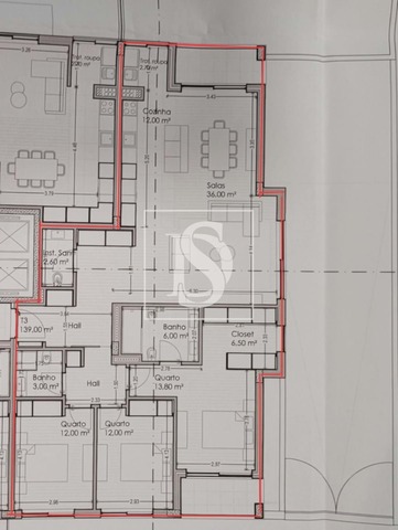 O apartamento tem 139m2 de área bruta privativa e a orientação solar é nascente , poente e sul. Equipado com caixilharia dupla com vidro triplo. Na zona sala temos um conceito open space com aproximadamente 48m2 de cozinha e sala e com acesso a uma varanda virado a nascente. A cozinha fica completamente equipada de eletrodomésticos como combinado, forno, placa, micro-ondas, exaustor e maquina de lava loiça, tudo da marca Balay.