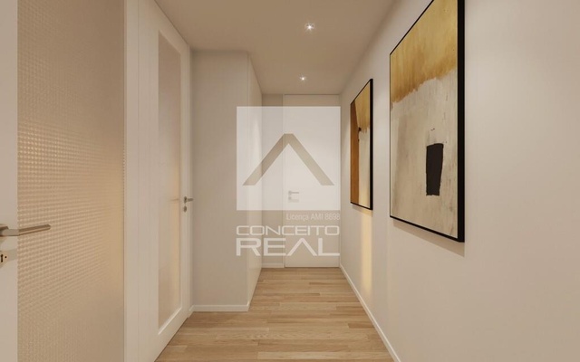 Estado: Em construção/ novo| Ano construção: 2025| Área bruta total: 103.10m2 |Tipologia: T2| Piso: 3º | Casas de Banho: 2| Elevador: Sim|Exposição solar: Nascente| Garagem: Lugar de garagem p/ 1 carro| Apartamento inserido em condomínio fechado com 12 frações, inserido ao nível do 1º, 2º ou 3º andar. Com 1 frente c/ 87.70 m2 de área útil, lugar de garagem para 1 viatura.Apartamento constituído por hall com acesso à sala com varanda, cozinha equipada com placa, forno, combinado, exaustor e máquina louça, bancada em granito preto Angola, hall privado c/ acesso ao wc completo e aos 2 quartos, sendo 1 suite e tendo 1 varanda.Empreendimento em início de construção Abril 2024 e fim previsto Nov / Dez. 2025.Apartamento com qualidade de construção, bons acabamentos e conforto!Inserido num condomínio fechado com privacidade e requinte aliado ao conforto e qualidade.Inserido em zona residencial com excelentes acessos, transportes e comércio a 1 minuto. A 1 minuto do Alto da Maia e Centro Comercial Maia Shopping. A 2 minutos da estação.Marque visita e acompanhe o " crescimento " do seu novo lar.Cada imóvel é único. Escolha o seu com a nossa ajuda.Somos Intermediários de crédito vinculado, registados no banco de Portugal com o nº 2222.