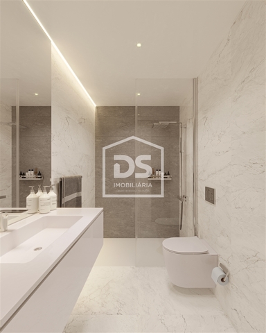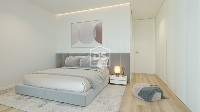 Este T2  foi projetado com espaços generosos e varandas pensadas para maximizar o conforto. A zona social conta com um hall de entrada, sala ampla e cozinha em open space que se prolonga até à varanda, ideal para momentos de lazer e relaxamento. Na zona privativa, há um hall de distribuição para os quartos espaçosos, com roupeiros embutidos, incluindo uma suíte, oferecendo total privacidade.