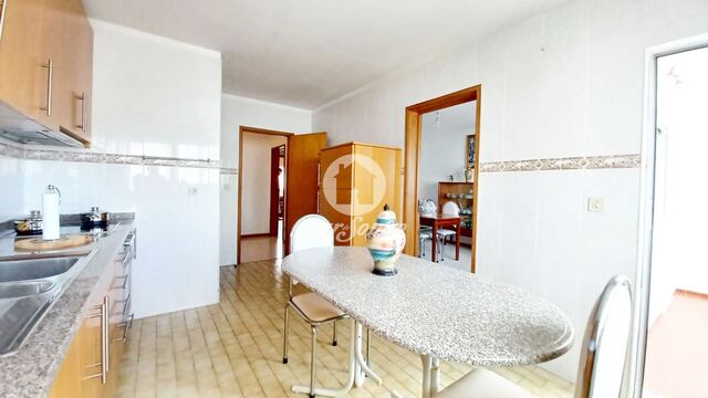 Cozinha equipada (18m²) com móveis, placa, forno, exaustor, frigorífico e despensa