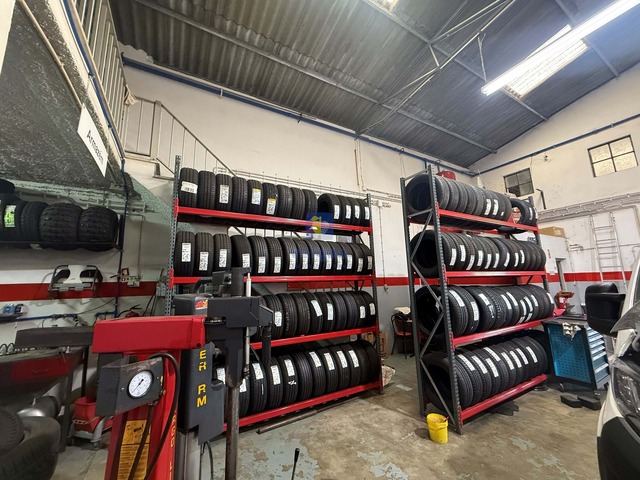 pneus, óleos, acessórios, embraiagens, travőes, amortecedores e diversos materiais de oficina.