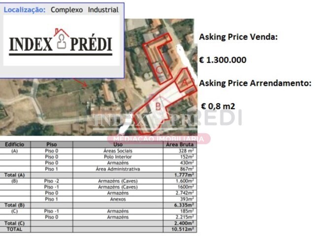 Instalações industriais destinadas ao armazenamento e comercialização de vinho, com uma área bruta de construção total de 10.512m2 , dividido por 3 edifícios destintos: